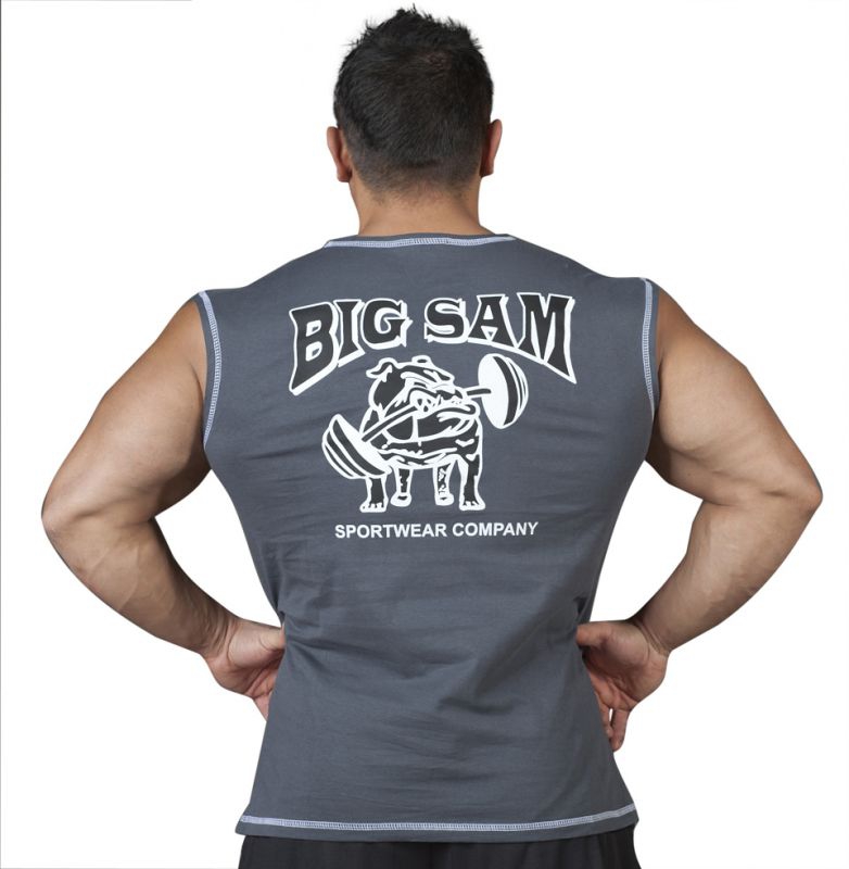 Безрукавки предпочитают носить те, кто занимается спортом, ведет активный образ жизни и имеет красивое тело, которое подобная одежда демонстрирует в привлекательном свете. Серый цвет данной модели является нейтральным, универсальным и подойдет любому. А принт с большой надписью названия торговой марки Big Sam выгодно выделит вас из толпы и заявит о вас, как о сильном и целеустремленном человеке.